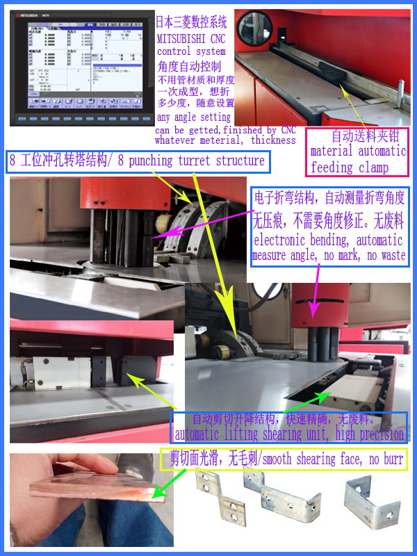 Our company also can make automatic processing center with only one set punching and shearing, but it is vertical feeding method and turret model unit.